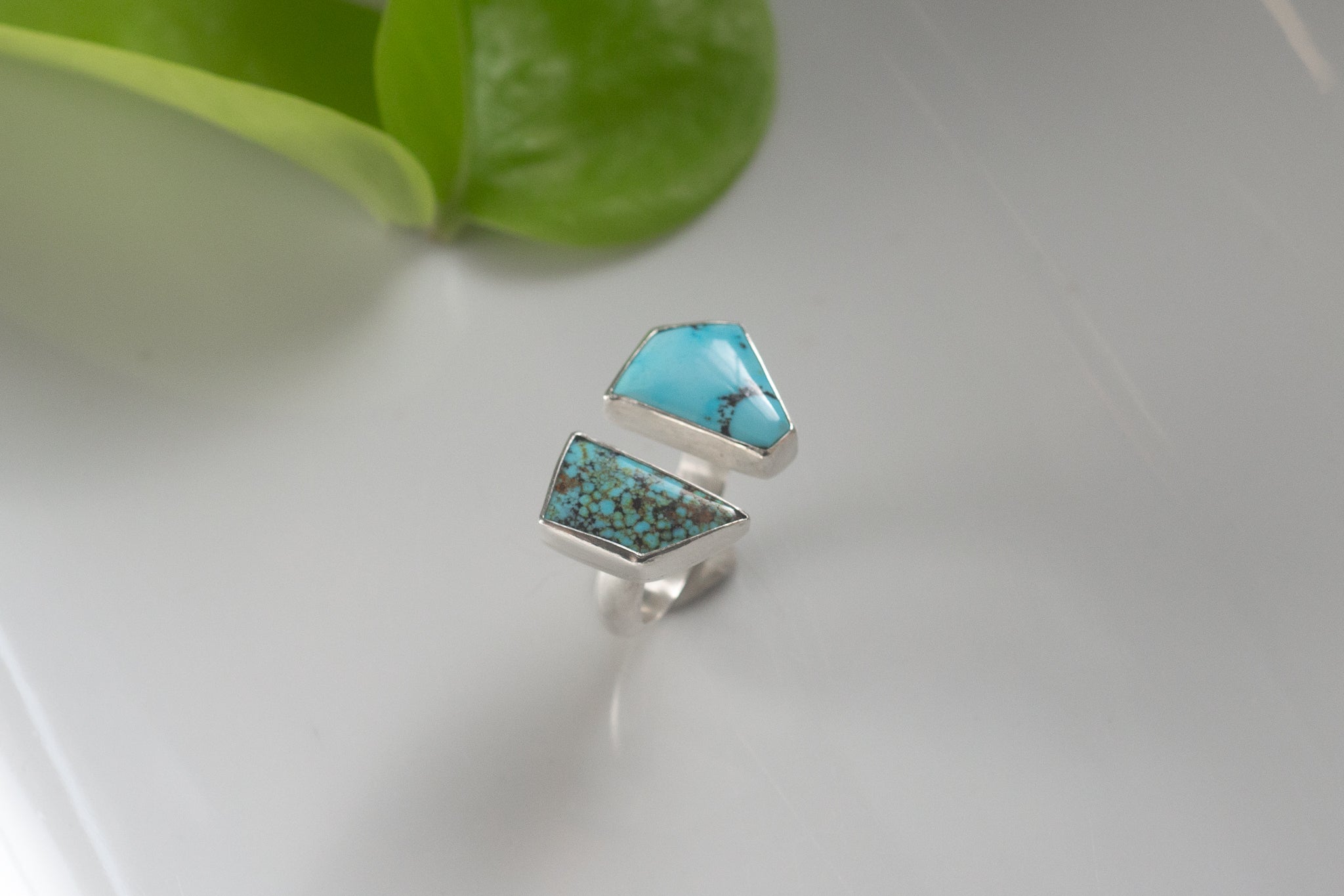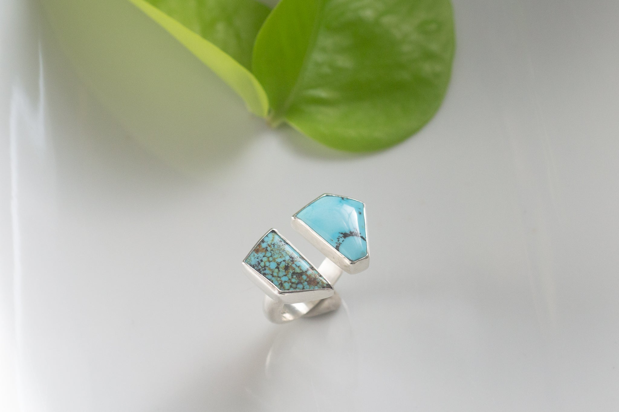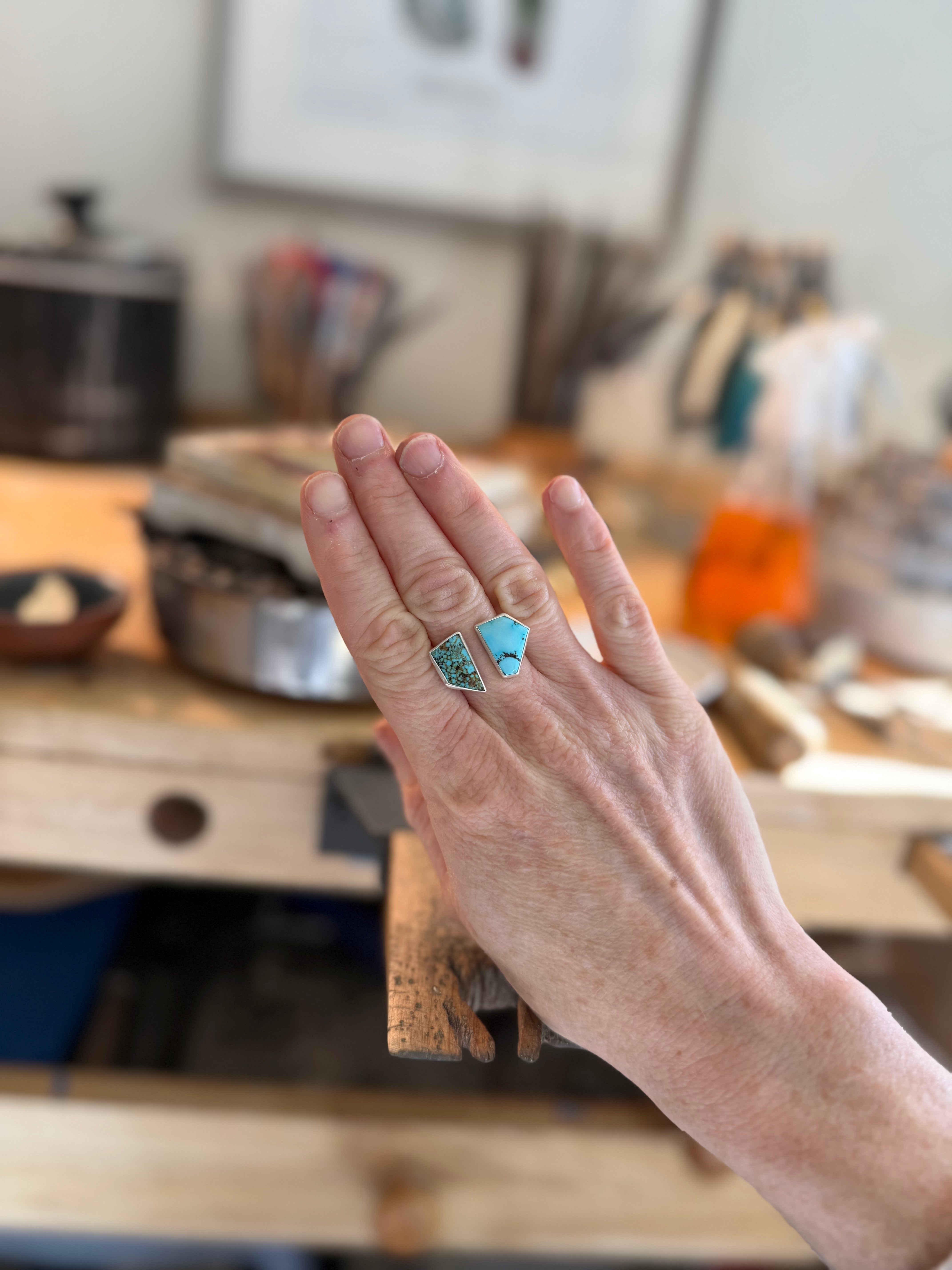 Turquoise mined in Nevada paired for the geometric cuts and the balance of light and dark