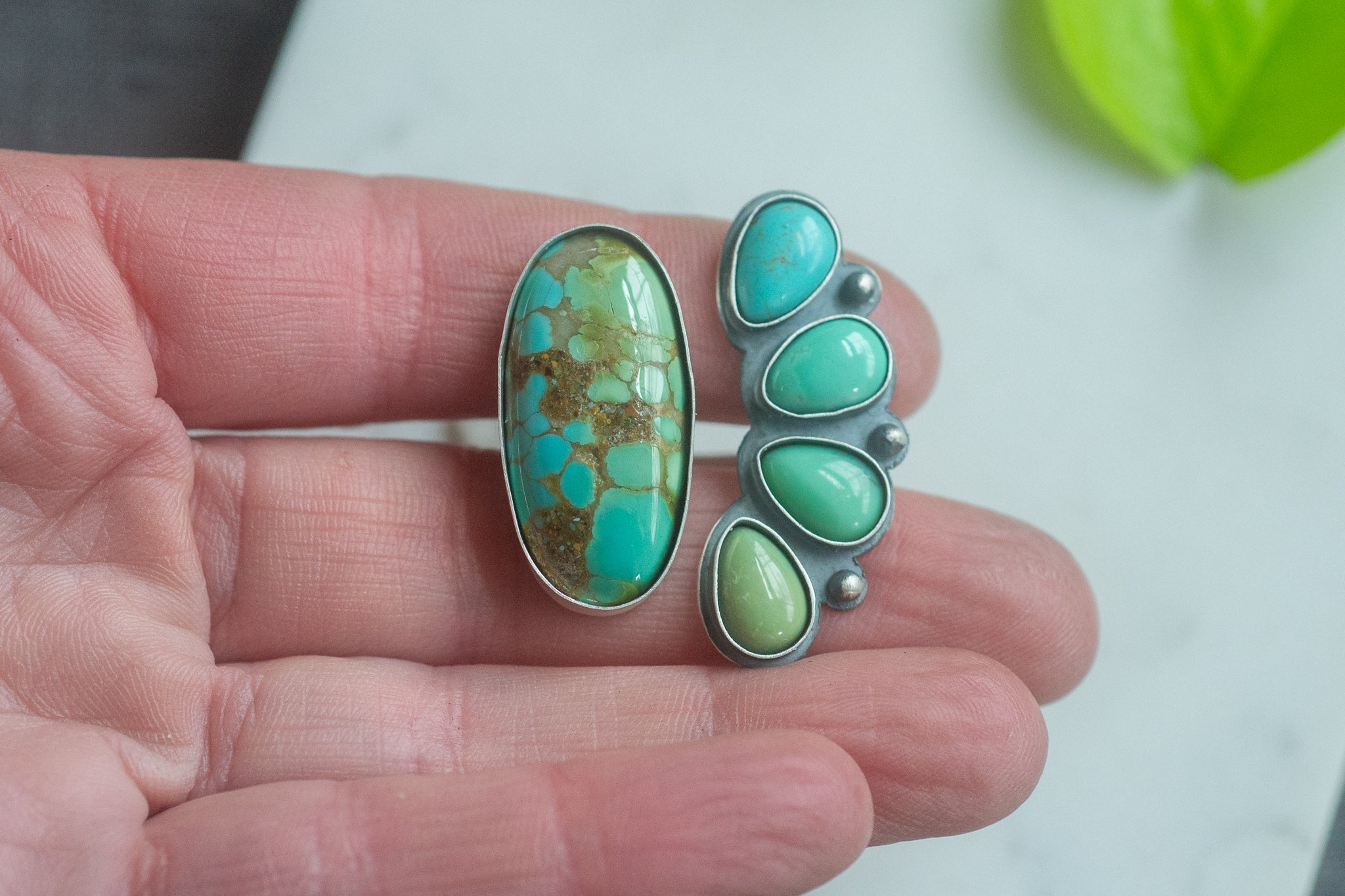 Oval Ajax variscite that I snagged at the Tucson Gem Show in 2025 from Esmerelda Turquoise