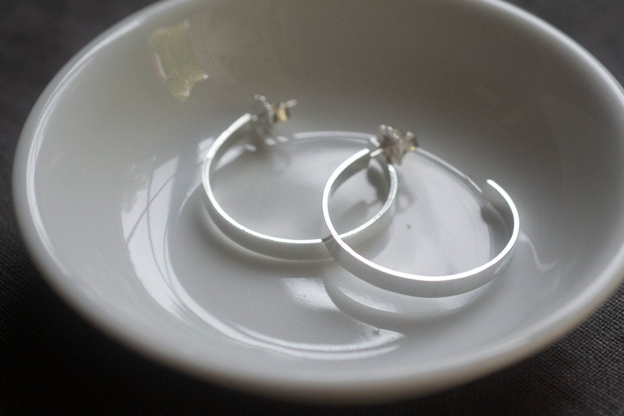 Flattened, rectangular sterling silver wire formed into medium sized hoops
