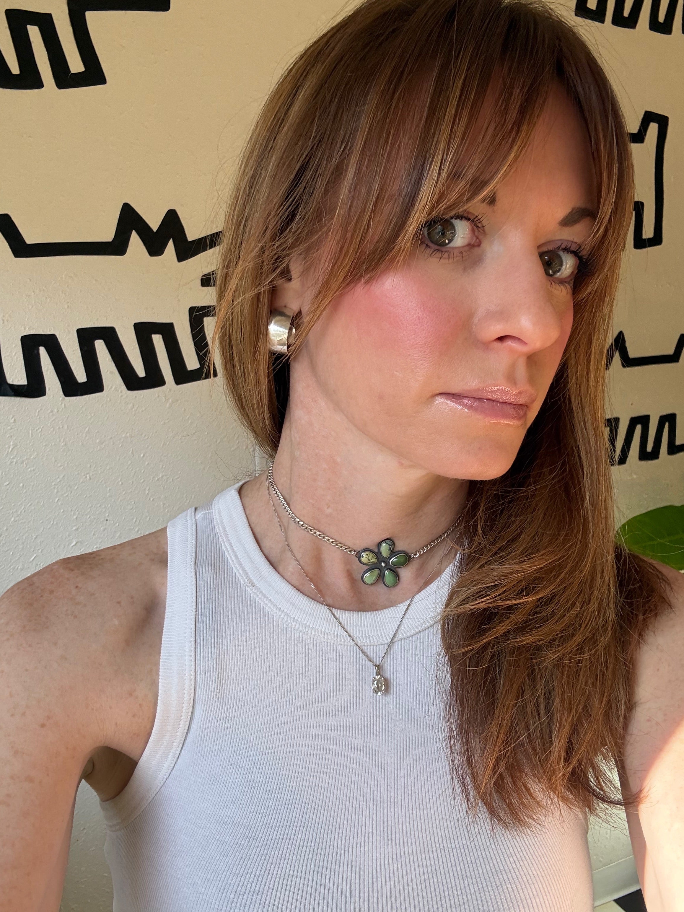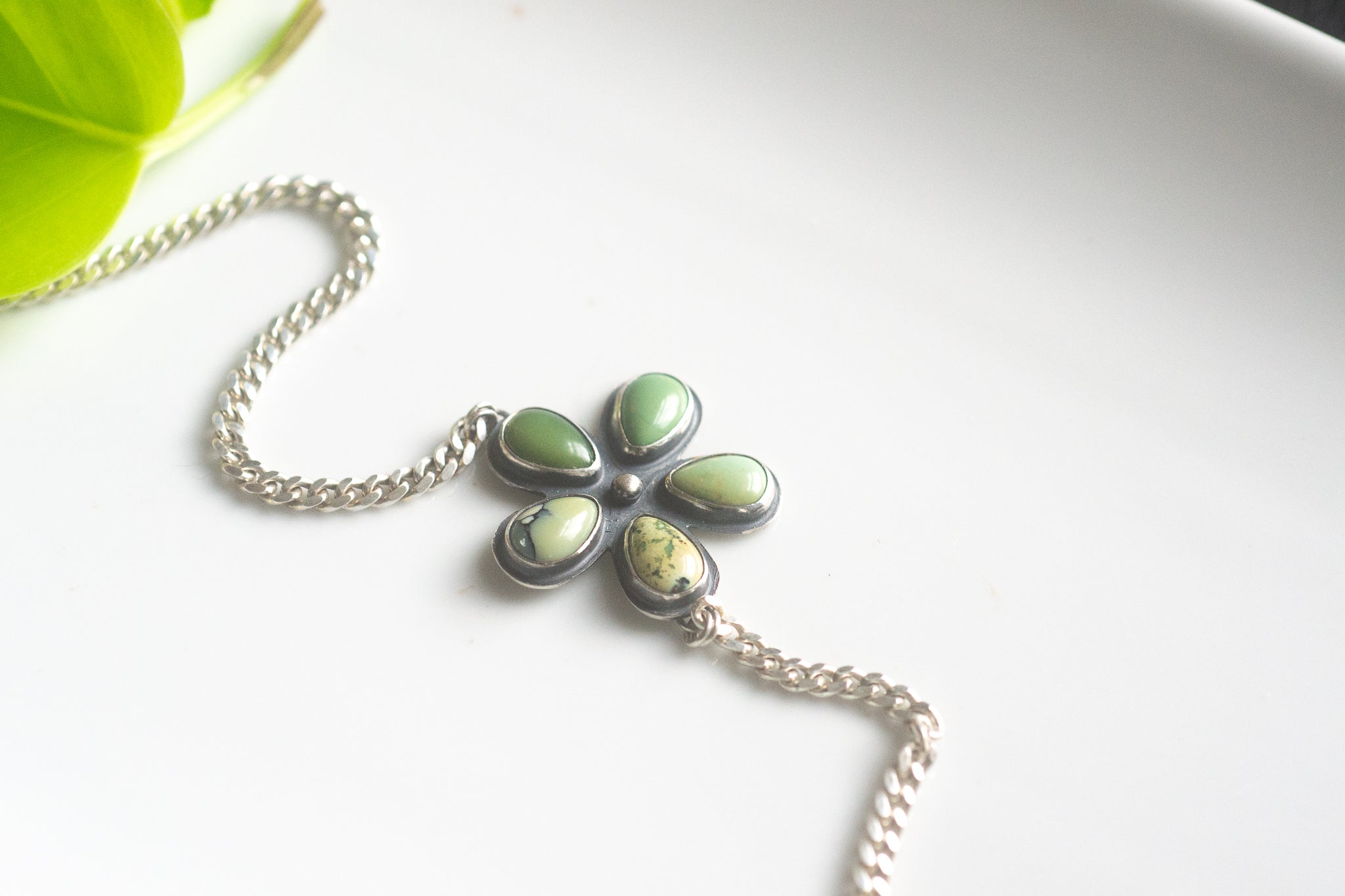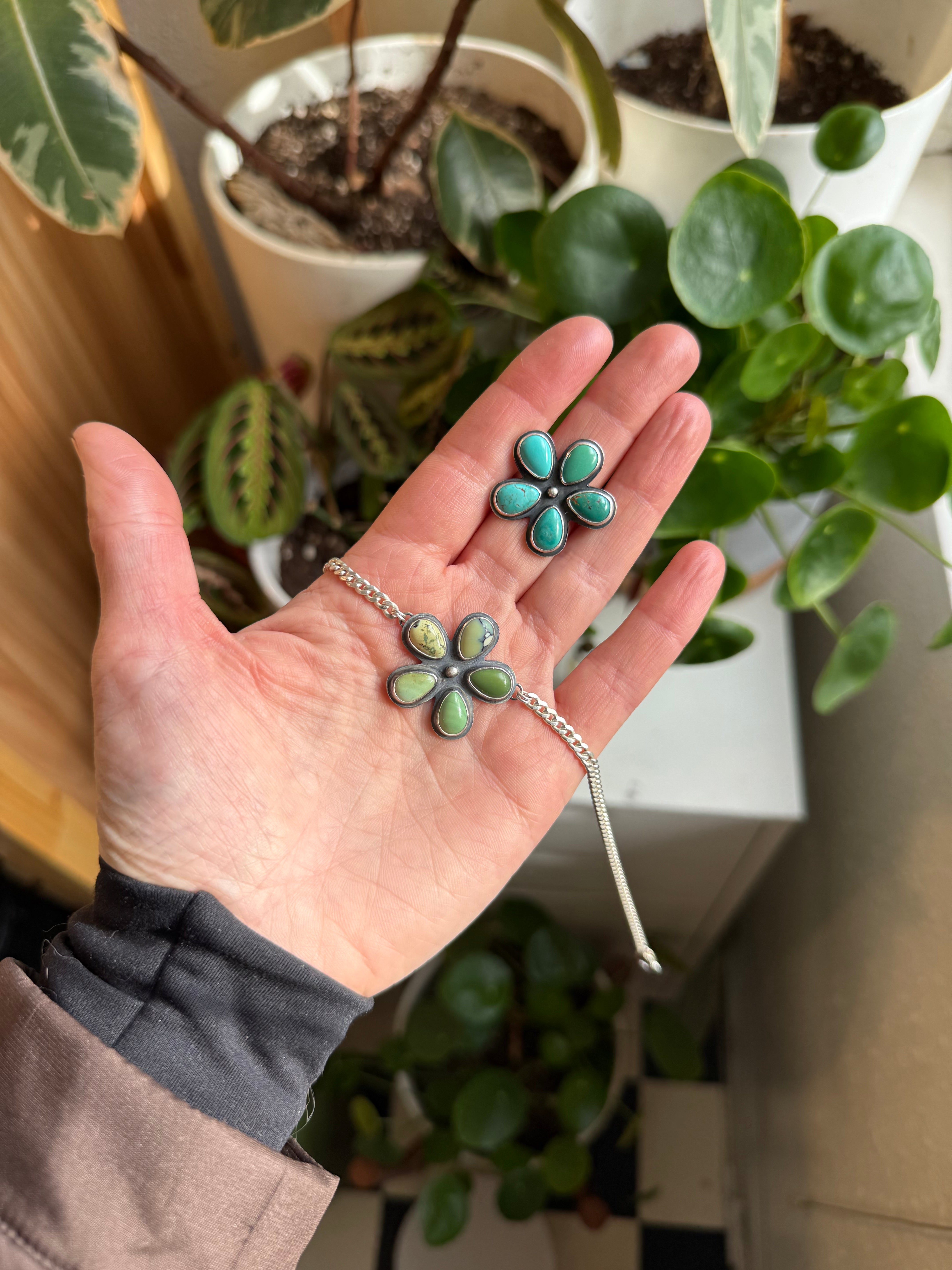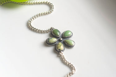 5 tear drop shaped New Lander variscite arranged to look like a flower