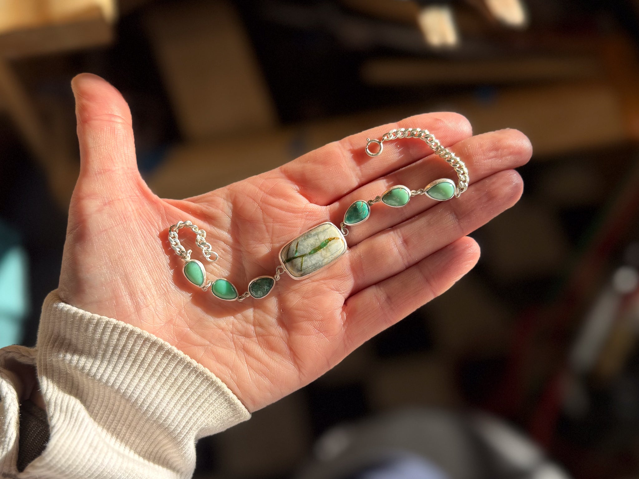 -Keep your jewelry away from lotions, perfumes and harsh chemicals. Remove jewelry when swimming and showering to prolong the life of your piece. Remember that turquoise & opals are very soft stones and jewelry should be taken off during any strenuous activity.